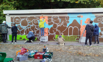 Zusammen mit dem Graffiti-Künstler Carsten Langner (@mr. casom) wurden einige „Ehemalige“, also ältere Kids, eingeladen,