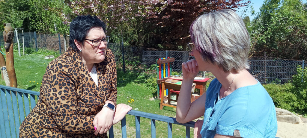 Kathrin Michel, Bundestagsabgeordnete für den Wahlkreis Bautzen I und Görlitz und Kreisvorsitzende der SPD Bautzen wollte aus erster Hand erfahren, vor welchen Herausforderungen und Aufgaben die Kindertagesstätten und Horte in unserer Region derzeit stehen. Ihre langjährige Verbundenheit als Mitglied der AWO zeigte sich besonders im Gespräch mit Kita-Leiterin Anne Kaiser, als sie auch uns dazu ermutigte, weiterhin für gute Arbeits- und Lebensbedingungen und für soziale Gerechtigkeit einzustehen.