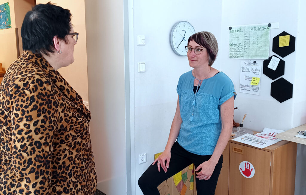 Kathrin Michel, Bundestagsabgeordnete für den Wahlkreis Bautzen I und Görlitz und Kreisvorsitzende der SPD Bautzen wollte aus erster Hand erfahren, vor welchen Herausforderungen und Aufgaben die Kindertagesstätten und Horte in unserer Region derzeit stehen. Ihre langjährige Verbundenheit als Mitglied der AWO zeigte sich besonders im Gespräch mit Kita-Leiterin Anne Kaiser, als sie auch uns dazu ermutigte, weiterhin für gute Arbeits- und Lebensbedingungen und für soziale Gerechtigkeit einzustehen.