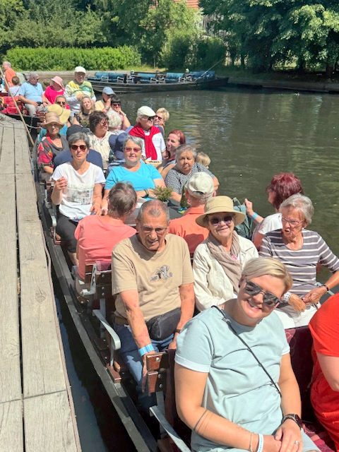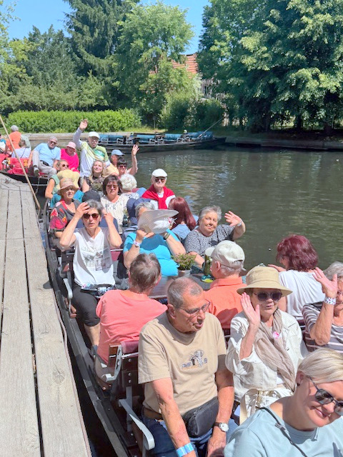 Dann begann bei phantastischem Wetter die große Kahn-Rundfahrt von 4 Stunden mitten durch das UNESCO-Weltkulturerbe, mit einem einstündigen Aufenthalt in Lehde.